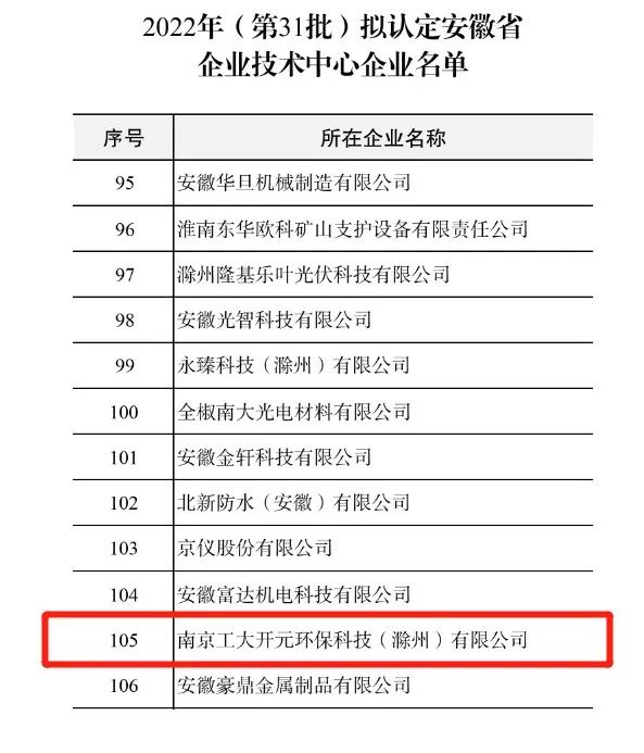 [ 开元 快讯 ]省级企业技术中心是省政府认可的在企业设立的具有较高层次和水平的研究开发机构、技术管理部门,是企业技术创新体系的核心,是企业技术进步和技术创新的主要技术依托。为进一步增强主体意识,加强技术中心管理,建立和完善面向市场选题开发、面向社会整合资源的开放式创新机制,强化自主创新,着力培育核心竞争力,高层次、高起点地抓好企业技术中心建设,根据《安徽省省级企业技术中心认定管理办法》,对提出申请认定省级企业技术中心的企业,从组织机构、研发人员、产学研联合、科技投入、试验设备以及创新机制等方面进行了严格审查,经专家评审,并最终认定南京工大开元环保科技(滁州)有限公司技术中心为安徽省省级企业技术中心。
